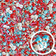 Our most anticipated Christmas sprinkle mix is "Oh Snow Cute." It's a blend of icy blues and white snowflakes punctuated with bright Christmas red and shiny silver metallics. Oh, and did you see those oh-snow-cute snowmen?
