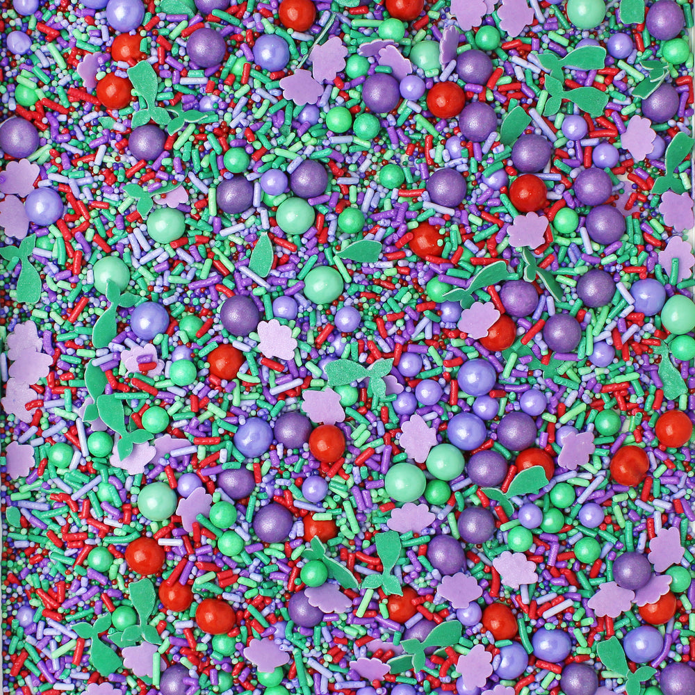 Introducing our "Mermaid Princess" sprinkle mix! Perfect for all your under the sea baking needs. This sprinkle mix features a beautiful blend of purple, green and bright red accents, reminiscent of the colors of the ocean and its inhabitants. This mix is perfect for adding a touch of magic to your cupcakes, cookies, and cakes. The colors are vibrant and fun, making them perfect for birthday parties, baby showers, and any other occasion that calls for a little bit of under the sea magic. With a shelf life of 18 months and stored in a cool, dry place, this sprinkle mix is sure to be a hit with all your guests. Add a touch of mermaid magic to your baked goods with our "Mermaid Princess" sprinkle mix.
