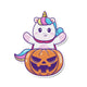 Halloween Unicorn Edible Cupcake Toppers - Set of 12 toppers featuring cute unicorns with jack-o'-lanterns. Made from high-quality cardstock wafer paper and edible inks.