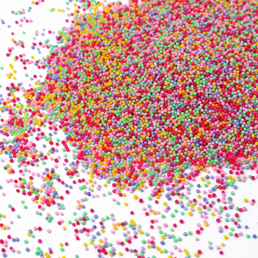 Image of Summer Vibes Sprinkle Mix with vibrant pink, yellow, orange, and teal sprinkles in a summery setting.