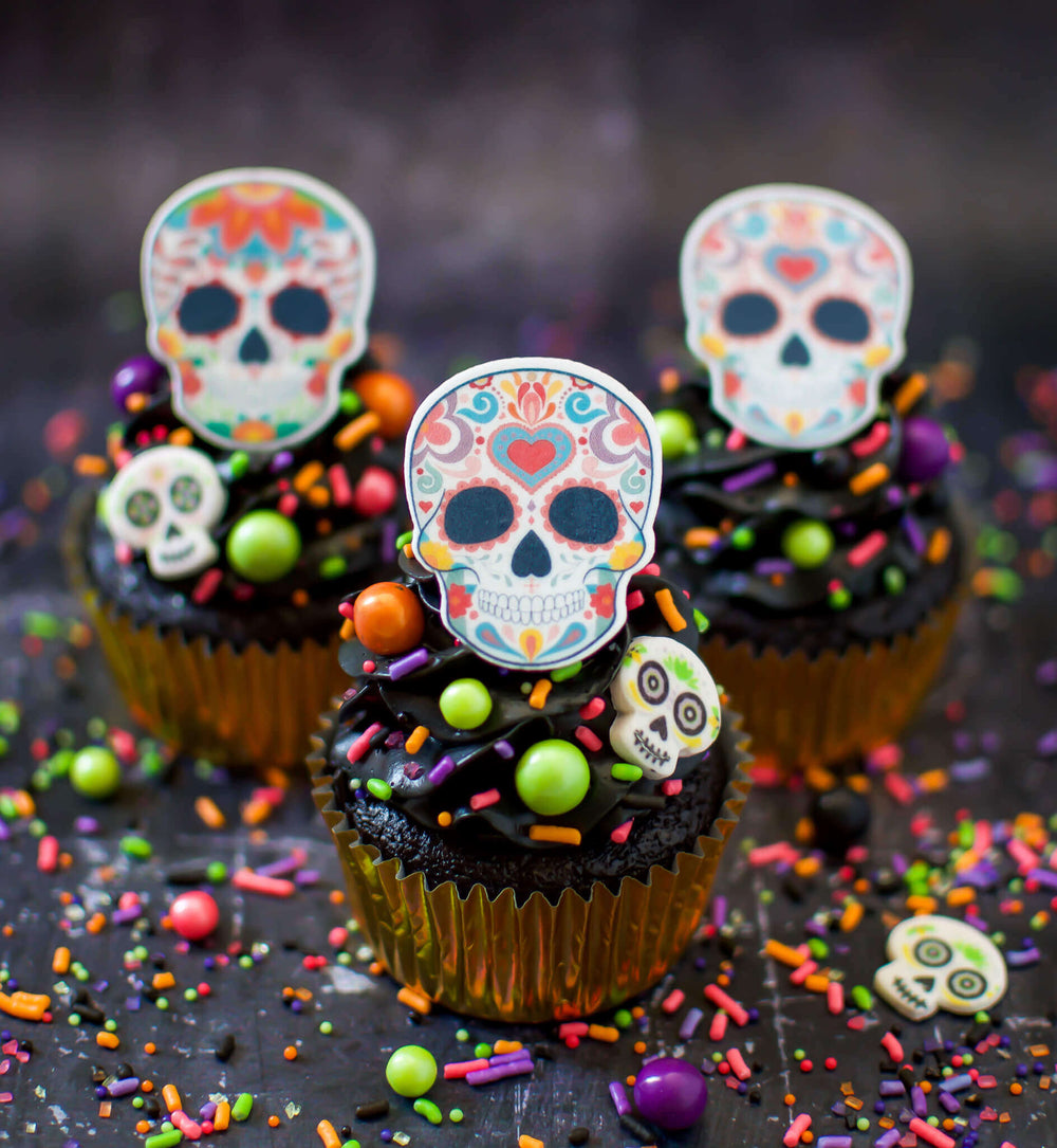 Celebrate life with our bright Day of the Dead Skull toppers. Works best in high fat frostings and low humidity environments. Refrigeration is not recommended.