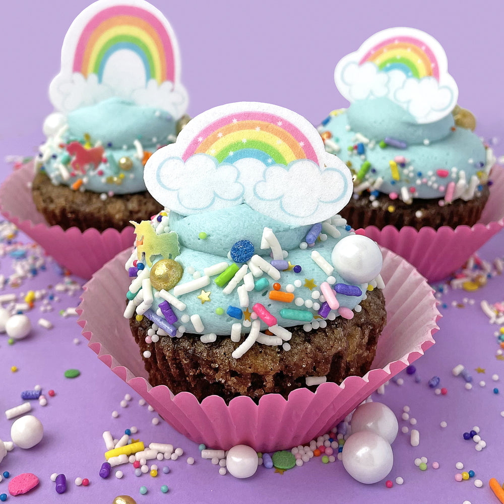 Our neon Rainbow Edible Cupcake Toppers are the perfect addition to your colorful cupcakes, cookies, and treats! It pairs perfectly with our Rainbowcorn Sprinkle Mix. Wafer toppers are vegan and gluten-friendly!